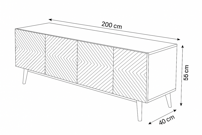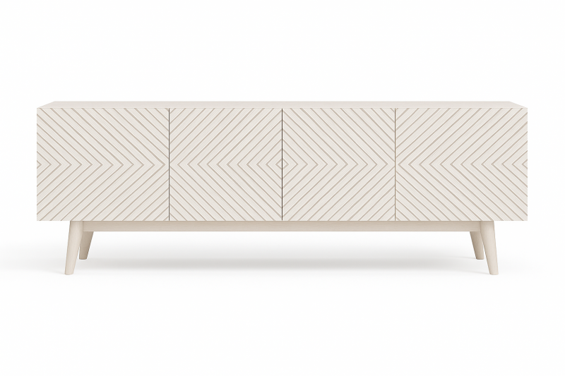 This TV cabinet features a sleek, modern silhouette with a unique chevron-patterned front, adding a touch of geometric elegance. Crafted in a light wood finish, it blends effortlessly with minimalist or Scandinavian interiors. The four-door storage offers ample space to keep your entertainment essentials organized and out of sight. Perfect for creating a clean and stylish living space.