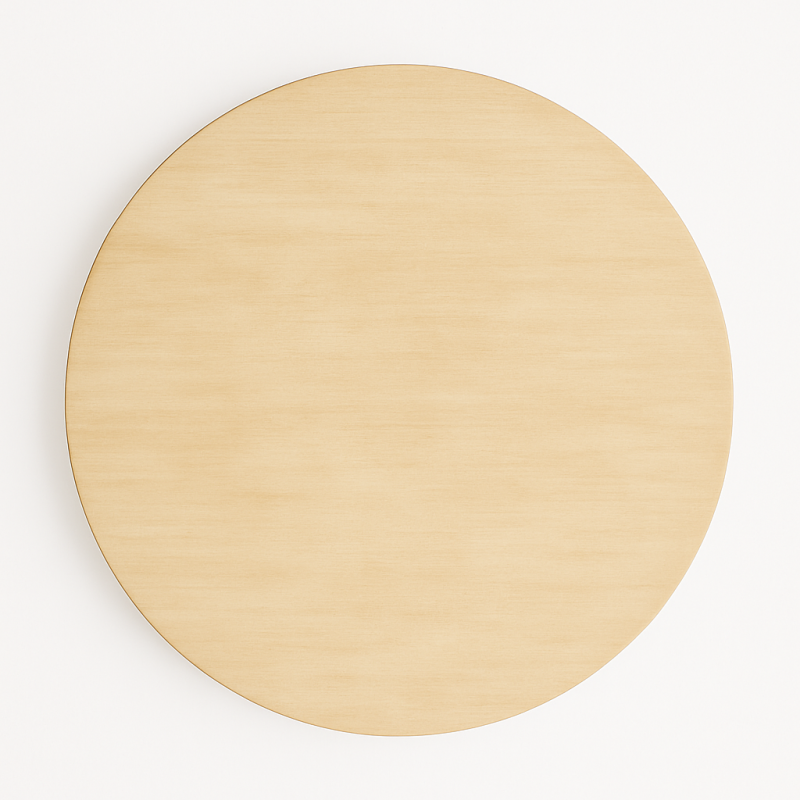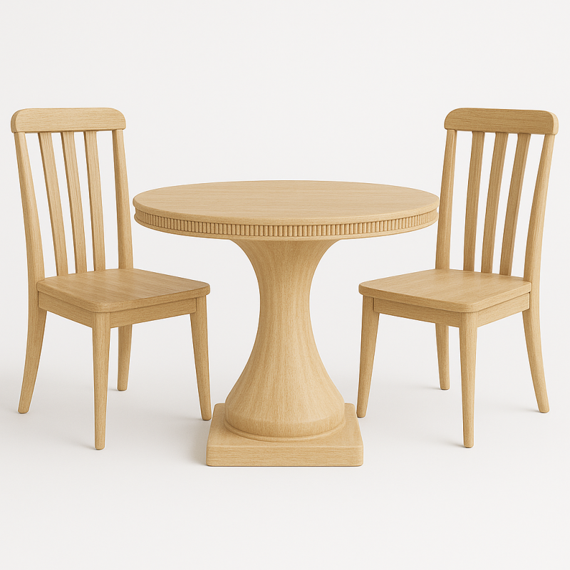 A sculptural round dining table crafted in natural wood, featuring a gracefully flared pedestal base and finely grooved detailing along the edge. A perfect blend of elegance and timeless design for modern dining spaces